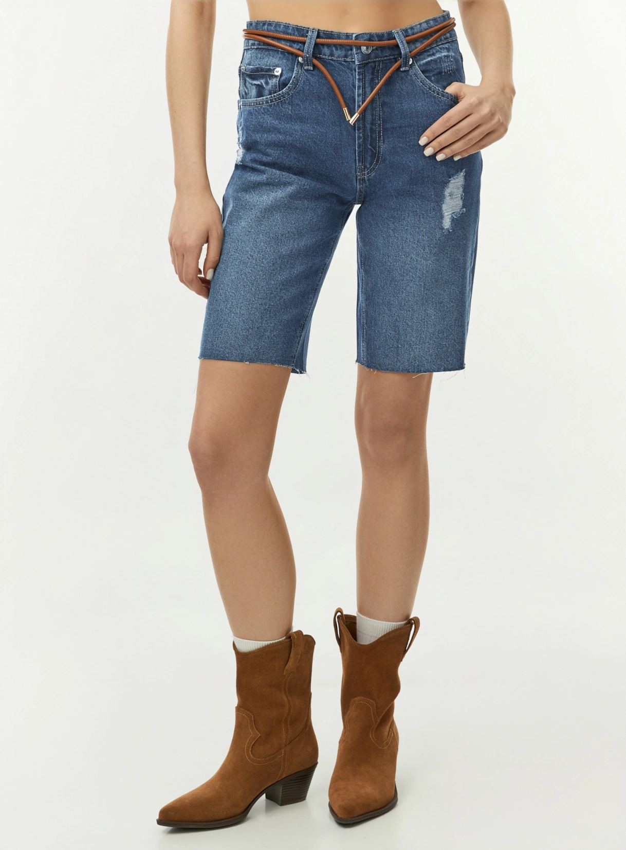 DESCRIPTION Long, tapered shorts. This stylish distressed style will always be in style, regardless of fashion trends. They’ll easily create a casual look for hot…