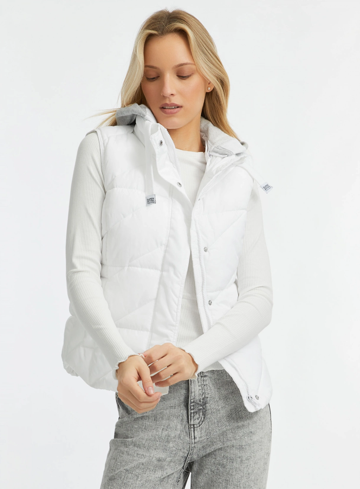 Temperature range*: +5° to +15° C. DESCRIPTION This insulated vest features a high stand-up collar and a hood. This straight-cut jacket features spacious side pockets…